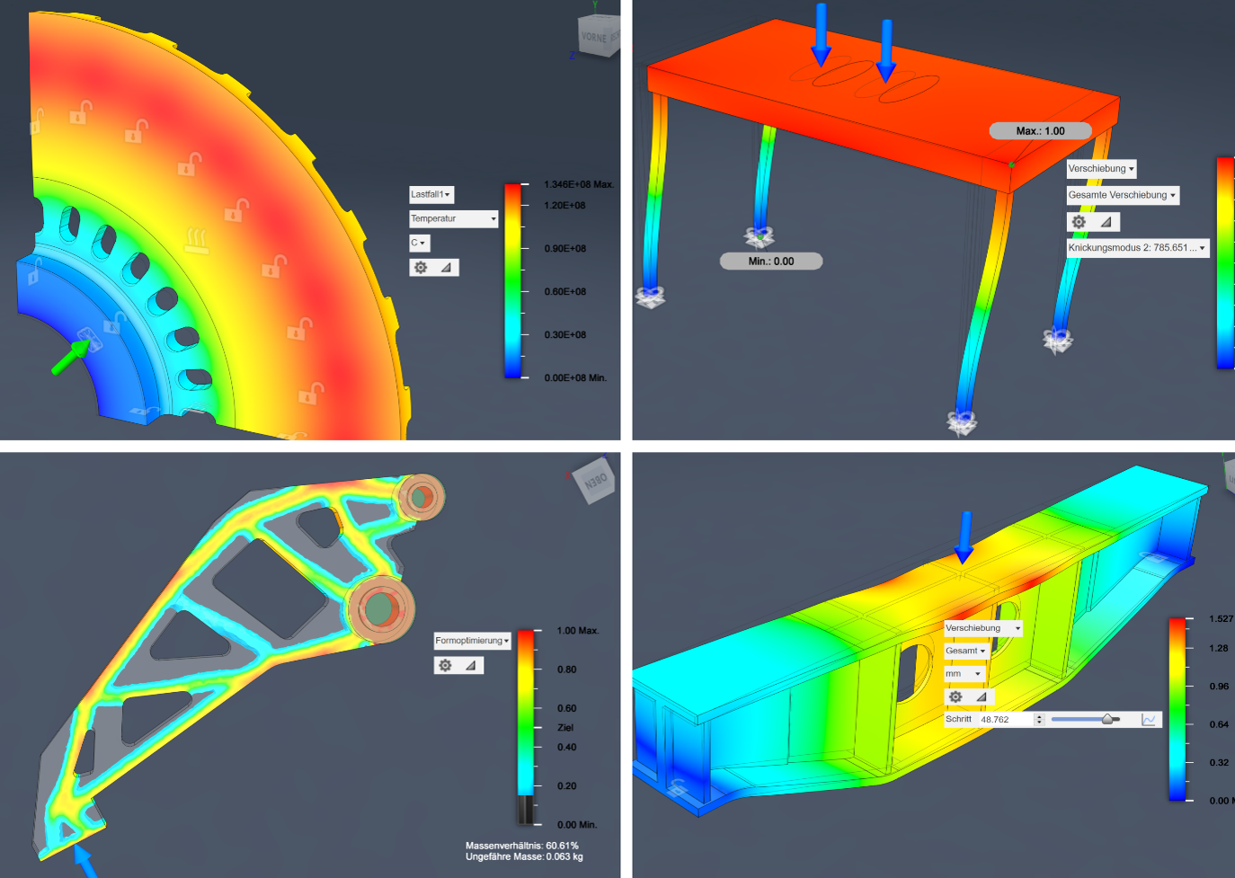 Der integrierte Simulationsbereich (FEM) ermöglicht es, Konstruktionen schnell zu validieren. Benutzer können aus elf verschiedenen Studientypen wählen und da die Berechnungen in der Cloud ausgeführt werden, steht die Rechenleistung des eigenen Geräts in vollem Umfang zur Verfügung, sodass parallel weitergearbeitet werden kann.