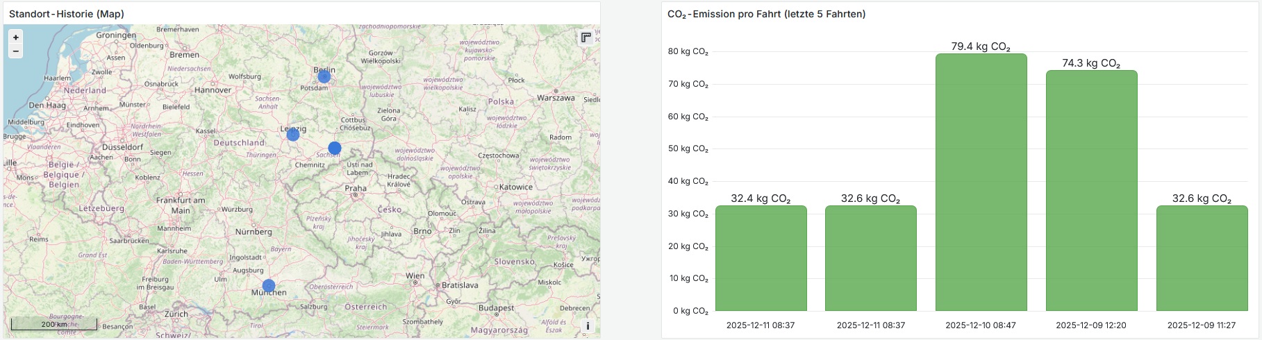 - Standort, Route, CO₂-Emissionen des Ladungsträgers